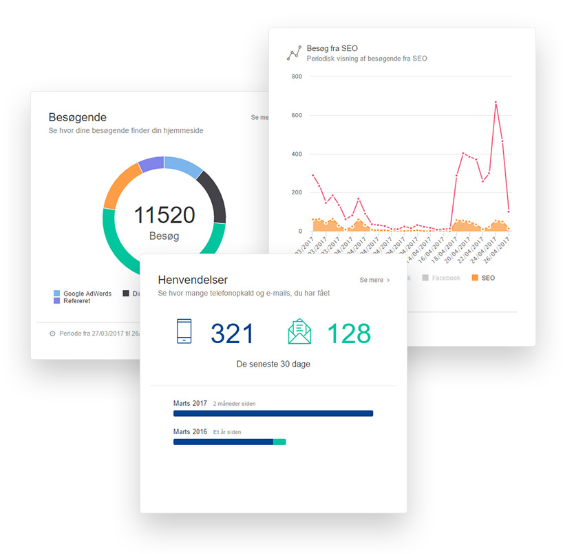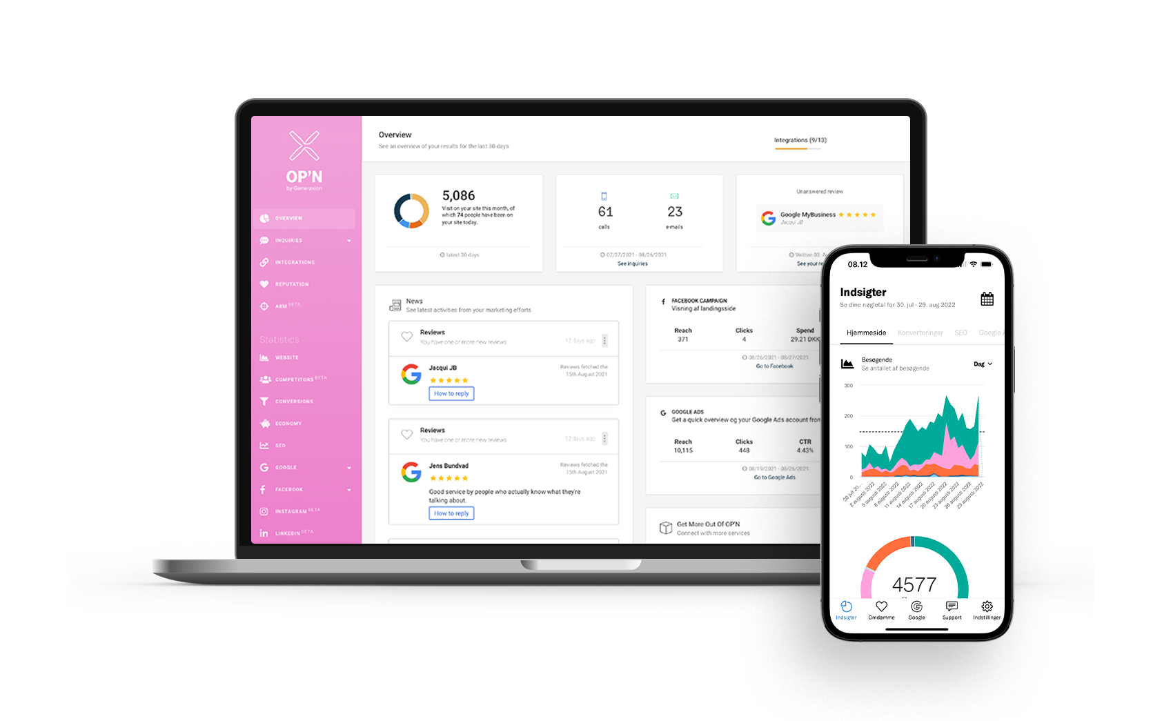 I OP'N finder du alle svar, du har brug for til at drive din forretning. Log ind og se antal besøg på din hjemmeside, antal henvendelser, dit omdømme og effekten af din markedsføring.