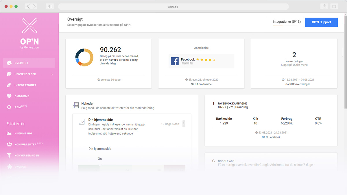 Du får en unik og uundværlig indsigt i din markedsføring, hjemmeside og kunder med OP'N.